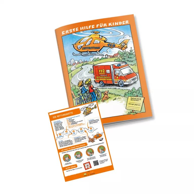 Das Mal- und Arbeitsbuch „Erste Hilfe für Kinder“ erzählt auf altersgerechte Weise die Erlebnisse der Geschwister Mario und Olivia. Gemeinsam mit ihrem Dackel Waldi erkunden sie ihre Welt – und sammeln wichtige Erfahrungen rund um Notfälle und die Erste Hilfe. Neben kindgerechten Tipps und Infos sorgt das Buch mit liebevollen Ausmal-Bildern und kleinen Aufgaben für einen spielerischen Lernerfolg, der Leben retten kann.